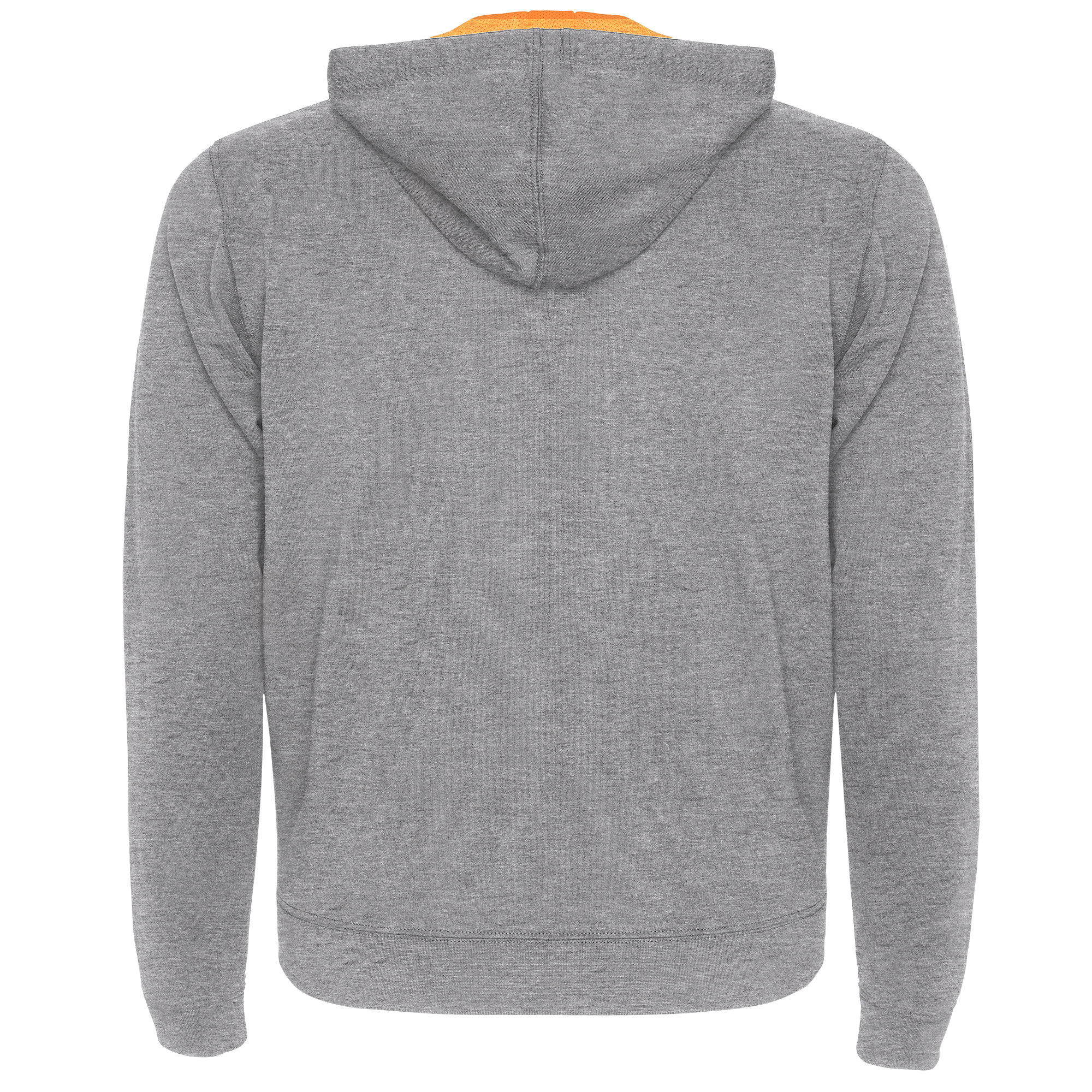Sudadera de felpa no perchada con detalles en color flúor. Cremallera central con tirador en contraste color flúor. Capucha con forro interior en tejido de poliéster microperforado en contraste color flúor, con cordón y ojales metálicos en contraste color flúor. Manga larga con puño y cintura en punto canalé 1x1. Dos bolsillos frontales con vivo ancho. Cubrecosturas reforzado en el interior del cuello.
