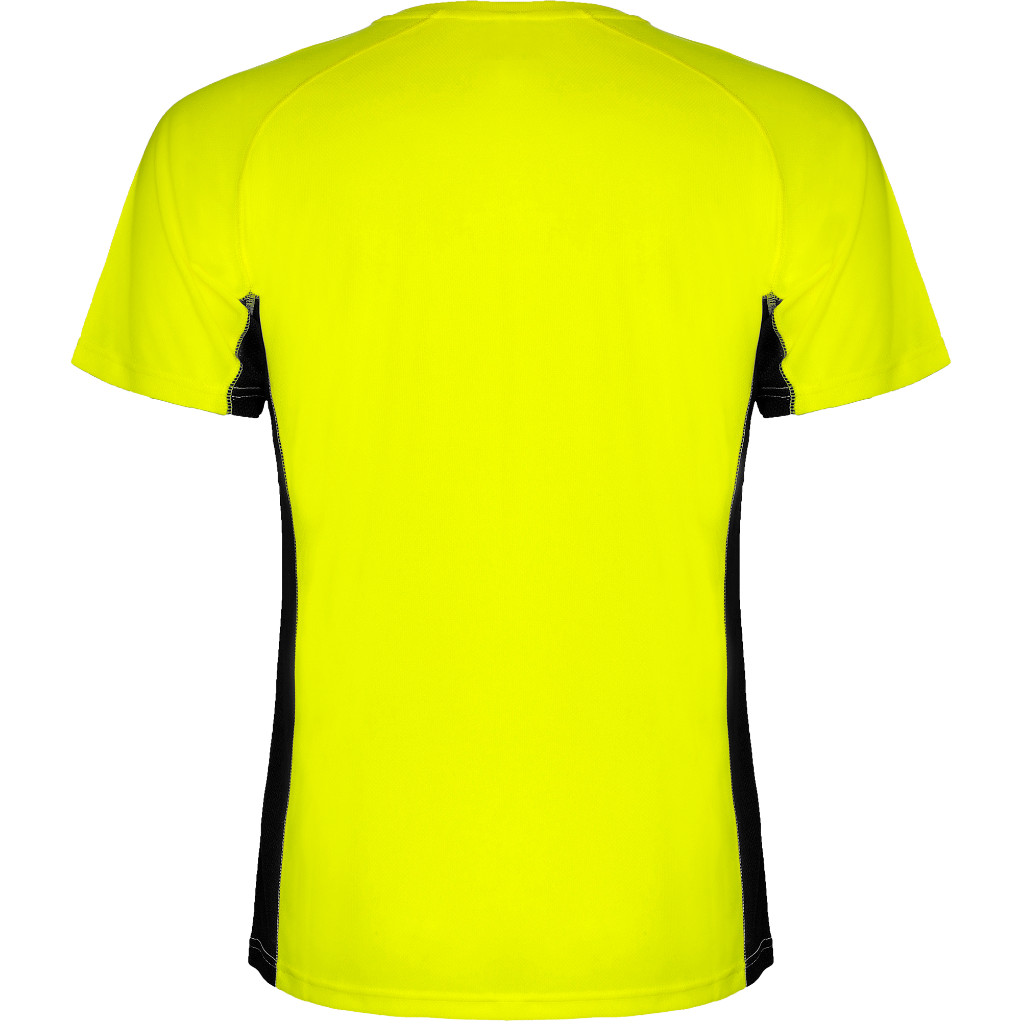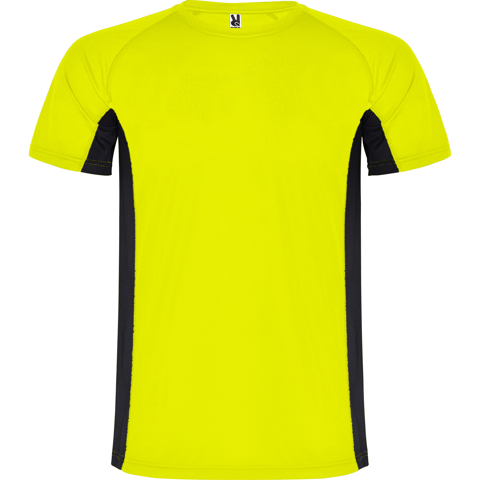 Camiseta técnica combinada con dos tejidos de poliéster, manga corta de estilo ranglán. Tejido principal bird's eye y paneles laterales e interior de la manga con tejido micro perforado. Cuello redondo con cubrecosturas de refuerzo en su interior. Camiseta de tejido confortable y fácilmente adaptable al cuerpo.